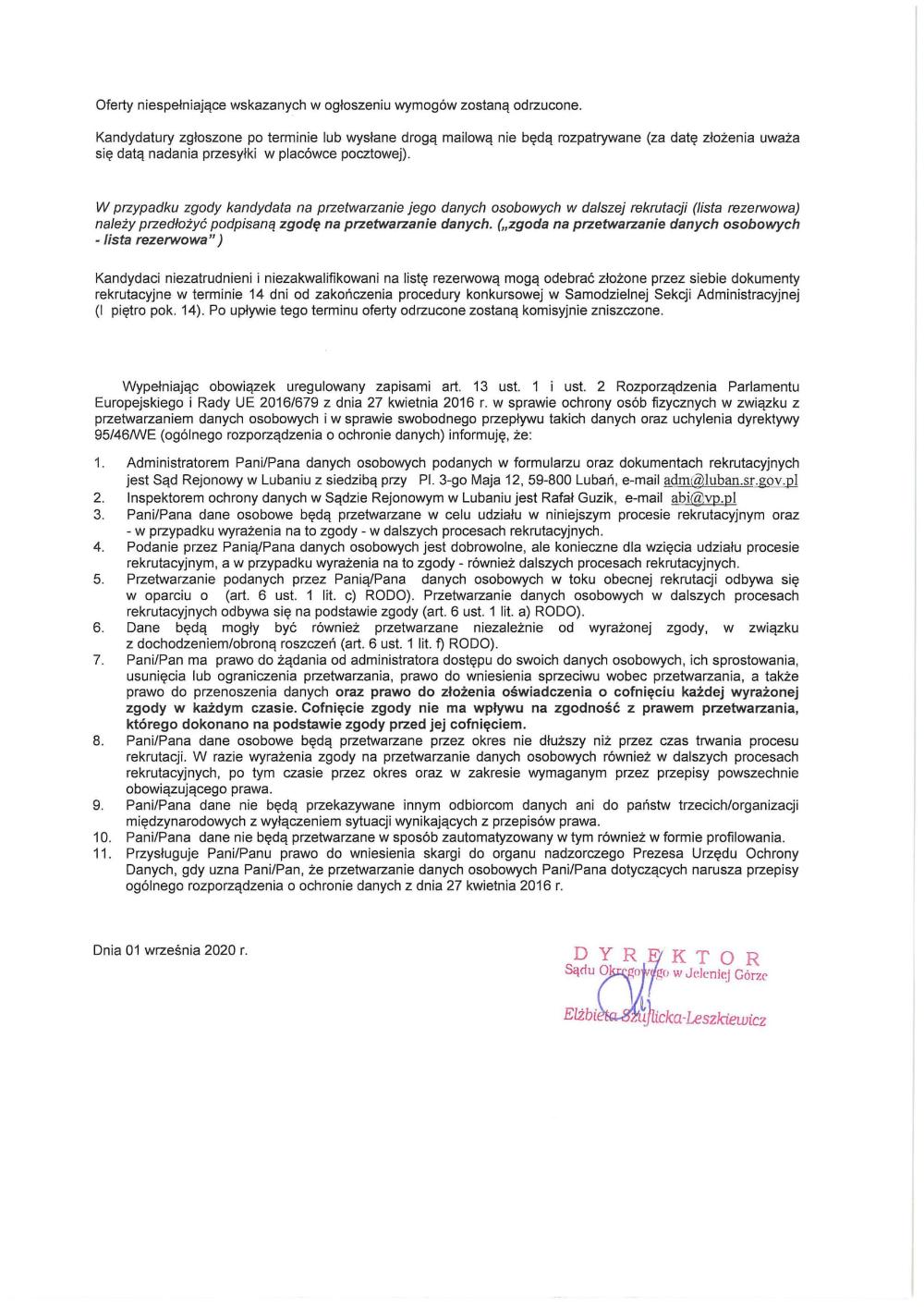 Dyrektor Sądu Okręgowego w Jeleniej Górze ogłasza konkurs na staż urzędniczy w Sądzie Rejonowym w Lubaniu.