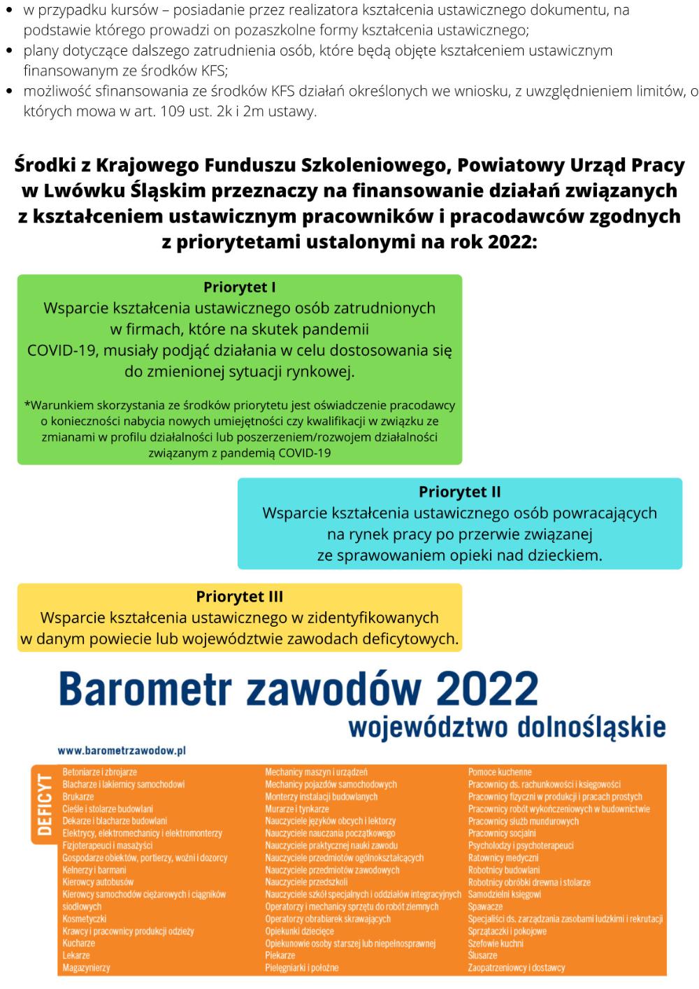 - zgodność kompetencji nabywanych przez uczestników kształcenia ustawicznego z potrzebami lokalnego lub regionalnego rynku pracy;